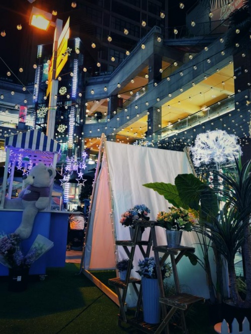 据网友爆料,洛阳新都汇广场内停着很多做“户外小店”用的小蓝车,蓝白相间的顶棚色彩鲜艳,简约且卡哇伊的构图,有种灵动之感。