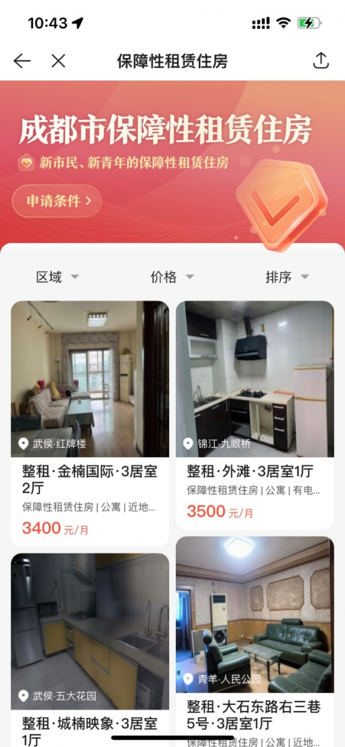 此外,凡是在成都创业就业的新市民、青年人等群体,并同时满足“年满十八周岁且具有完全民事行为能力;在租住的保障性租赁住房所在区(市)县无自有住房;在成都市未享受其他方式住房保障”等条件的,即可申请租赁“保租房”。